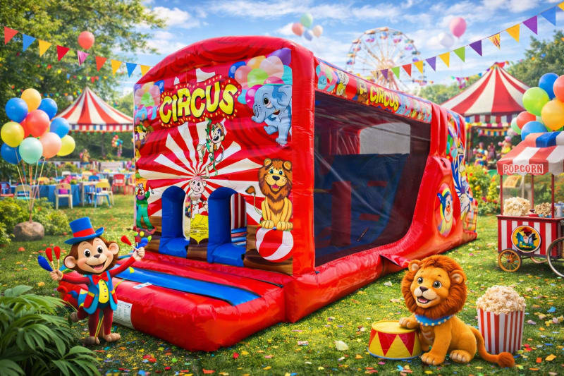 Make your child's day with this modern obstacle section. The inflatable obstacle course offers a safe entrance way with full theming, followed by a series of biff and bash pillars, cool chill out area in the middle, steep ladder climb and a crazy slide out of the end. The obstacle course is the perfect choice for your little one's birthday party school gala, summer fete and works fantastically as a stand alone item or as part of a larger package of matching inflatables.