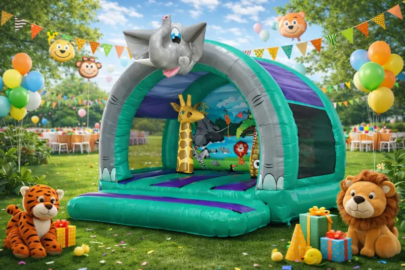 The 12x12-foot Jungle Curved Bouncer is part of our exceptional new 3D toddler line.